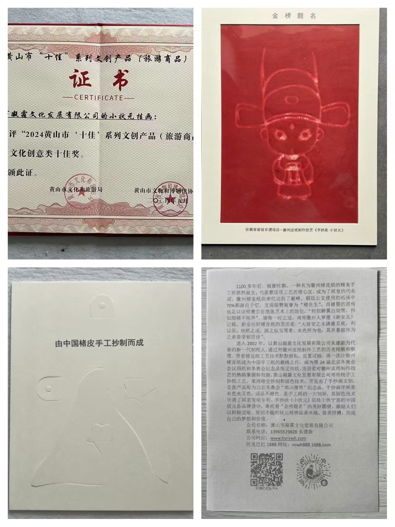 凝霜文化文創(chuàng)《小狀元掛畫》獲2024年黃山市“十佳”系列文創(chuàng)產(chǎn)品(旅游商品)稱號(hào)